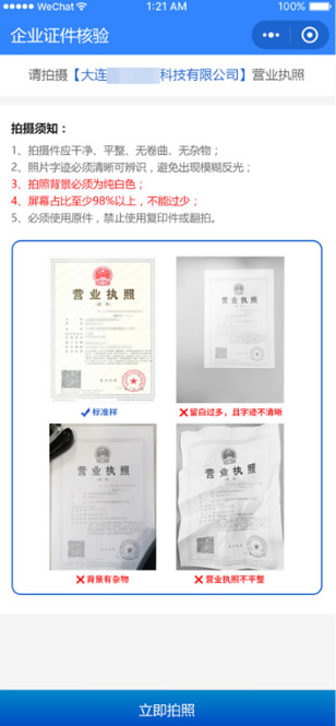 一般為對主體負(fù)責(zé)人身份證信息進(jìn)行識別及核驗(yàn)。備案人員需根據(jù)提示,進(jìn)行相關(guān)證件的拍照,電子化核驗(yàn)系統(tǒng)將自動識別相關(guān)證照中的文字信息并對信息進(jìn)行真實(shí)性核驗(yàn)。 |