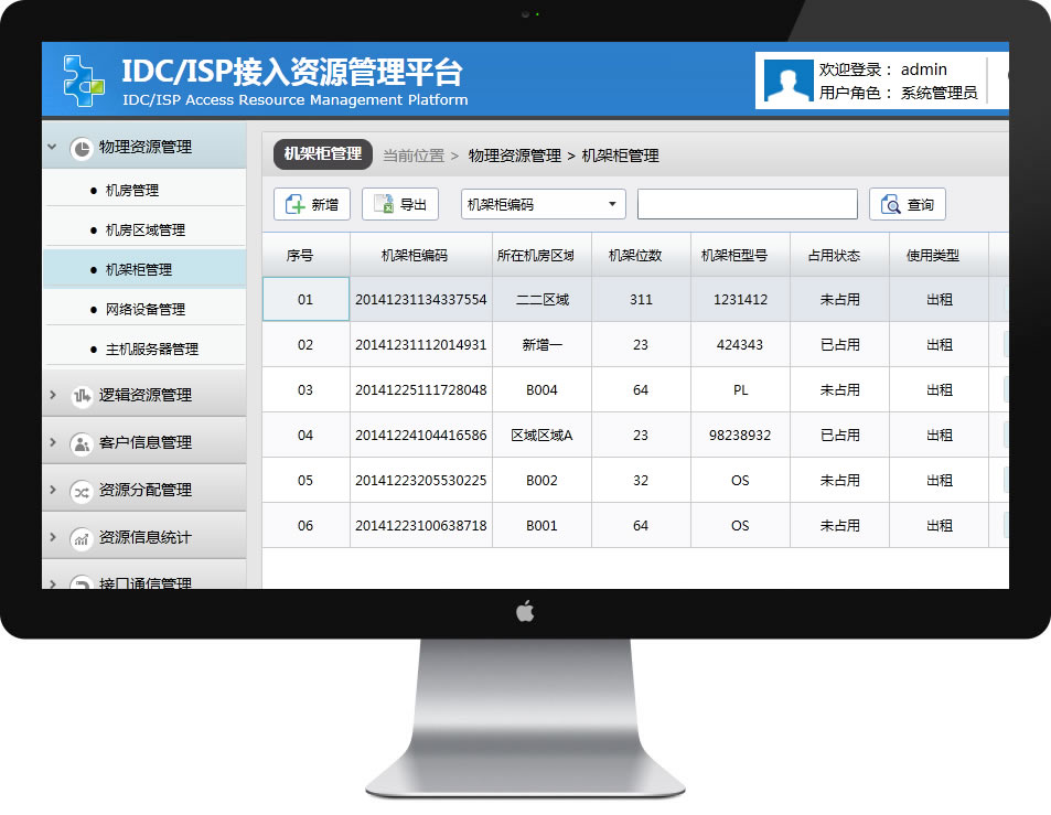 資源分配管理,可以管理您已經(jīng)分配的各種資源,如機(jī)房分配,服務(wù)器分配,網(wǎng)絡(luò)設(shè)備分配,可以點(diǎn)擊列表查看詳細(xì)的分配信息。 |