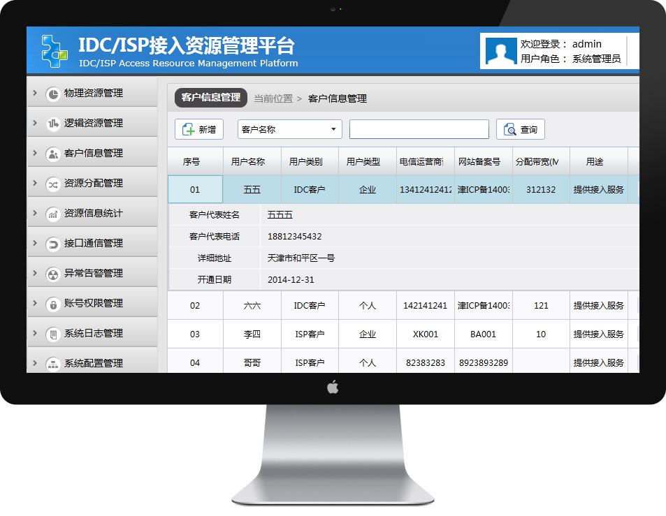 致遠(yuǎn)IDC/ISP接入資源管理系統(tǒng),是嚴(yán)格根據(jù)工信部相關(guān)系統(tǒng)要求而自主開發(fā)的一套資源接入管理系統(tǒng),設(shè)備主要針對(duì)接入資源的分配、使用、轉(zhuǎn)租等信息的記錄,并對(duì)接入資源的日常使用實(shí)行日常發(fā)現(xiàn)、分析和處理,使接入資源的空閑、分配、變更、釋放等狀態(tài)有據(jù)可查,大大提高了資源的利用率和資源的管理效率,同時(shí)也滿足電信管理部門和IDC/ISP企業(yè)接入資源的需求,在此之外,同時(shí)也實(shí)現(xiàn)了接入資源數(shù)據(jù)的上報(bào)的功能,接入資源數(shù)據(jù)能與管局的數(shù)據(jù)進(jìn)行同步的功能。