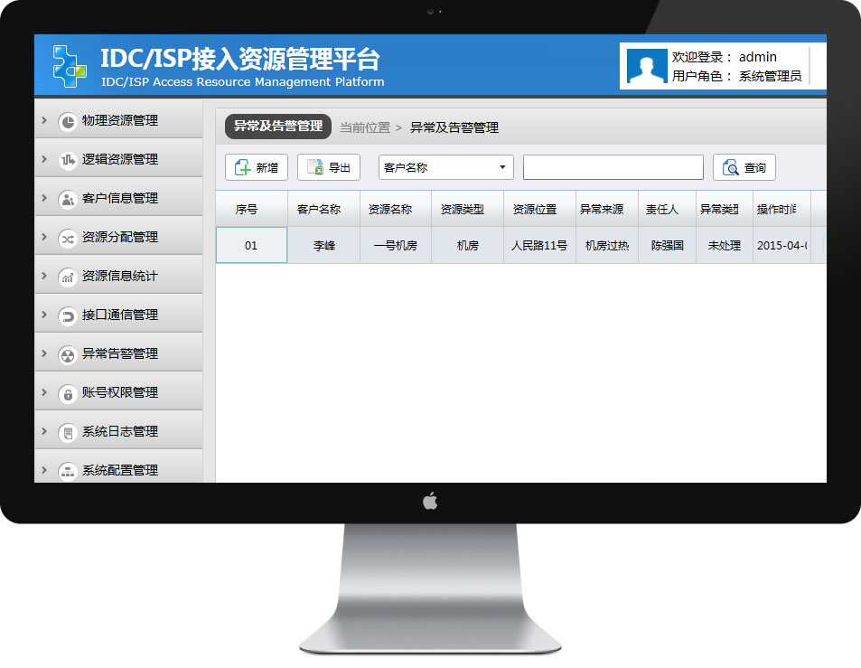 異常處理以日志的方式進(jìn)行管理。異常處理日志可以按照以下查詢條件進(jìn)行查詢:客戶、責(zé)任人、異常發(fā)生時(shí)間、資源類型、資源名稱、資源位置、異常來(lái)源。 |