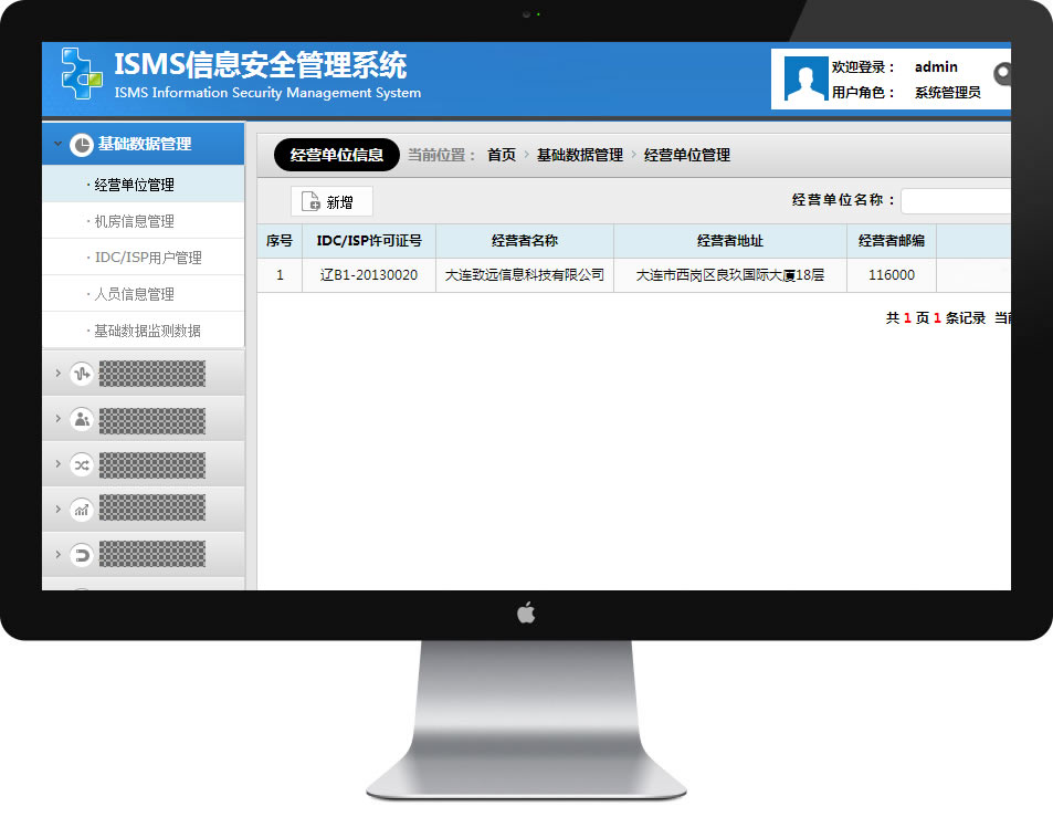 致遠(yuǎn)IDC/ISP信息安全管理系統(tǒng),可用于申請及開展互聯(lián)網(wǎng)數(shù)據(jù)中心業(yè)務(wù)不含互聯(lián)網(wǎng)資源協(xié)作業(yè)務(wù)(傳統(tǒng)IDC許可證)、互聯(lián)網(wǎng)接入服務(wù)業(yè)務(wù)僅限網(wǎng)站接入業(yè)務(wù)(ISP許可證)。